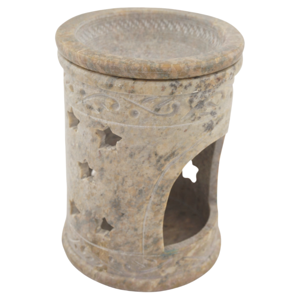 Duftlampe „Sonne“ aus Speckstein – Mit Schale für ätherische Öle & Aromatherapie – Handgefertigt mit Sonnen- & Sternenmotiv