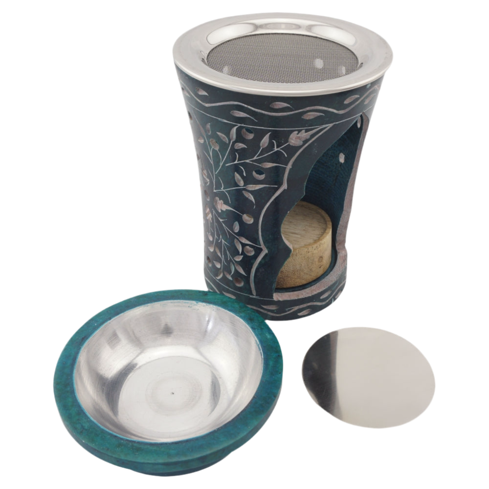 Duftlampe & Räucherstövchen „Nana“ aus Speckstein – Mit Schale, Metalleinsatz, Edelstahlsieb, Metallscheibe & Podest – Ideal für Duftöle, Weihrauch & Kräuter