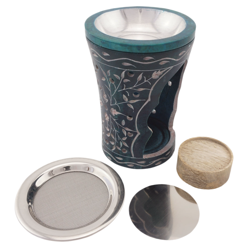 Duftlampe & Räucherstövchen „Nana“ – Mystische Eleganz in grünlichem Speckstein