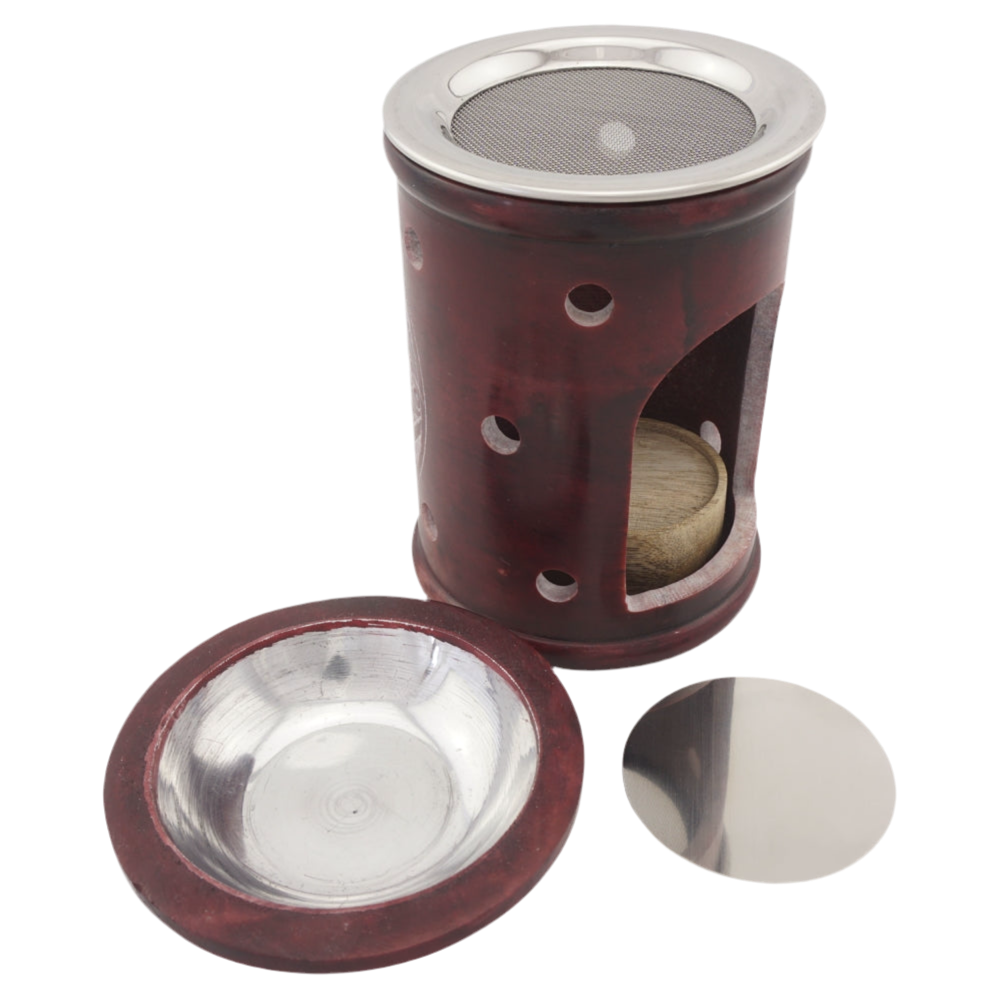 Duftlampe & Räucherstövchen „Ninurta“ aus Speckstein – Mit Schale, Edelstahlsieb, Metallscheibe & Podest – Für Duftöle, Weihrauch & Kräuter