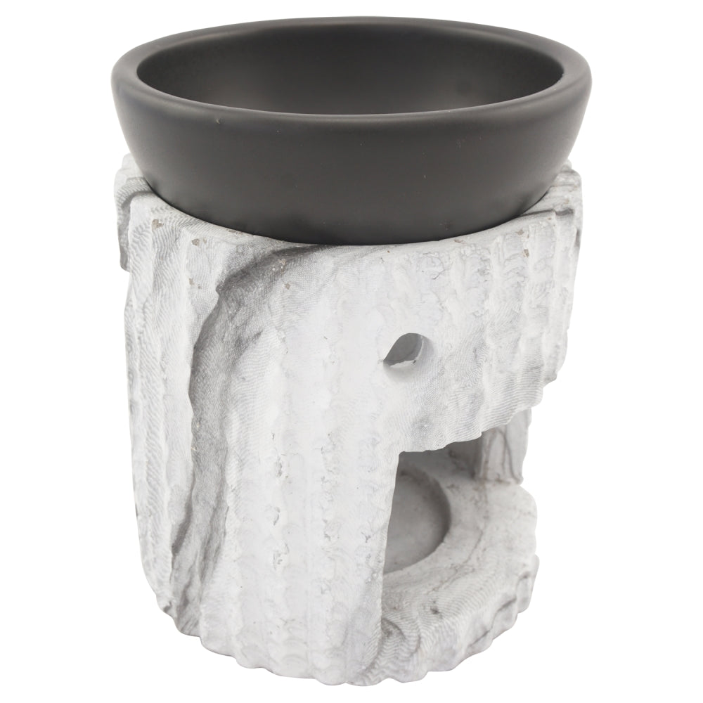 Eine sehr schöne, fein in Handarbeit hergestellte Duftlampe und Räucherstövchen aus Keramik in Steinoptik, mit ausreichend großer Öffnung, um das Teelicht gut positionieren und entfernen zu können.