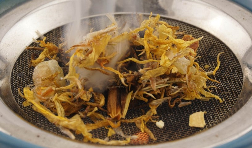 - Mit Schale für Duftöle und Edelstahlsieb zum Räuchern von Weihrauch, anderen Räucherharzen und -hölzern, sowie Kräutern.