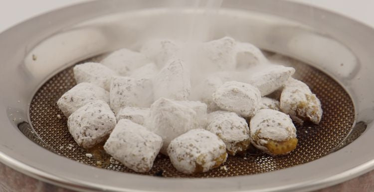 Und zuletzt noch ein Tipp, wenn die gekauften Teelichter manchmal etwas schwach ausfallen. Wir bieten dazu ein Podest aus Mangoholz, um das Teelicht näher an das Räuchergut zu bekommen. Hantieren Sie dabei vorsichtig, um kein Wachs zu verschütten.