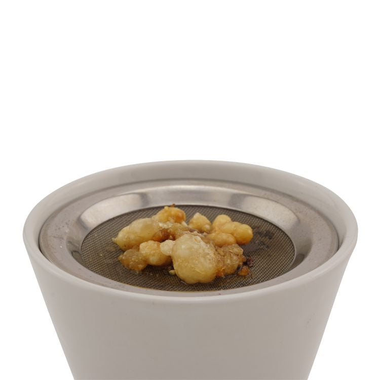 Geschenkset Räucherstövchen weiß, mit Sieb, Weihrauch Oman Al-Hojari und Weihrauch Athos Rosen