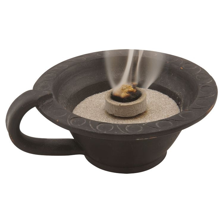 Geschenkset Tonschale mit je 20 g Weihrauch Athos Rosen und Reiner Weihrauch, Räuchersand, Räucherkohle 30mm und Räucherzange