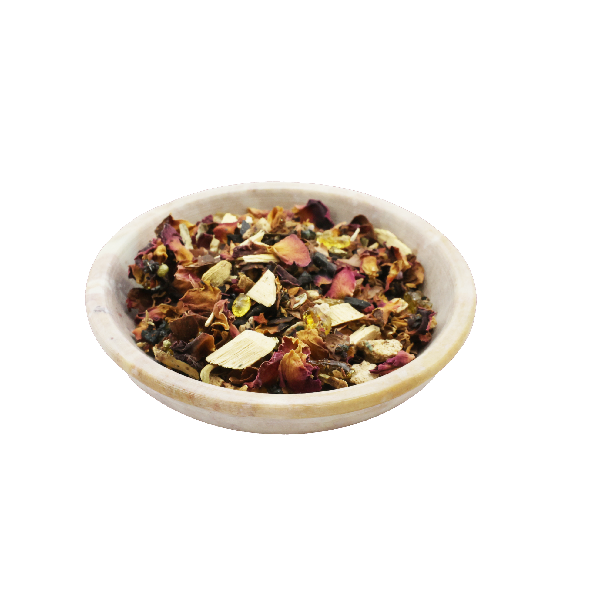 Jede Mischung wird von einem erfahrenen Kräuterpädagogen mit höchster Sorgfalt hergestellt. Sie enthält Styrax, Kakaoschalen, Rosenblüten, Zedernholz, Sandelholz & edle ätherische Öle – eine einzigartige Komposition, die sowohl anregend als auch harmonisierend wirkt.