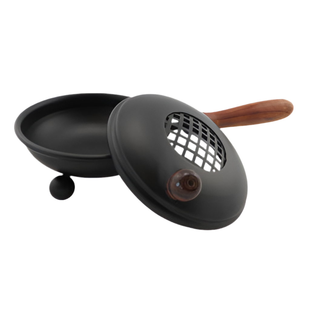 Räucherpfanne Schwarz mit Holzgriff – Handgefertigt für Räucherrituale mit Kohle, Weihrauch & Kräutern