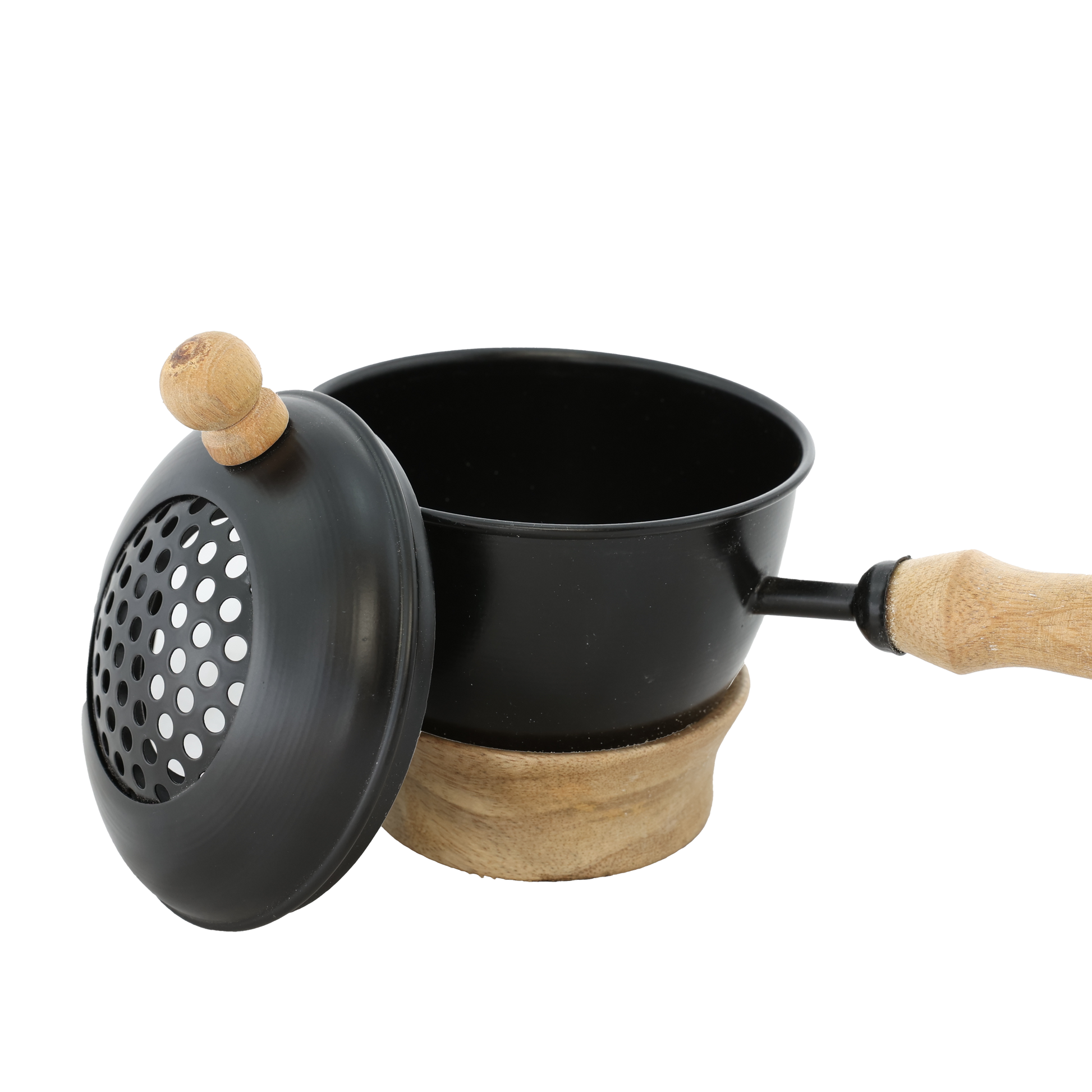 Spüre die Kraft des Feuers und erlebe die Magie der Räuchertradition mit der edlen Räucherpfanne "Thomasya". Ihr zeitloses Design verbindet rustikales schwarzes Metall mit edlem Mangoholz, wodurch sie nicht nur ein funktionales, sondern auch ein stilvolles Räuchergefäß ist.