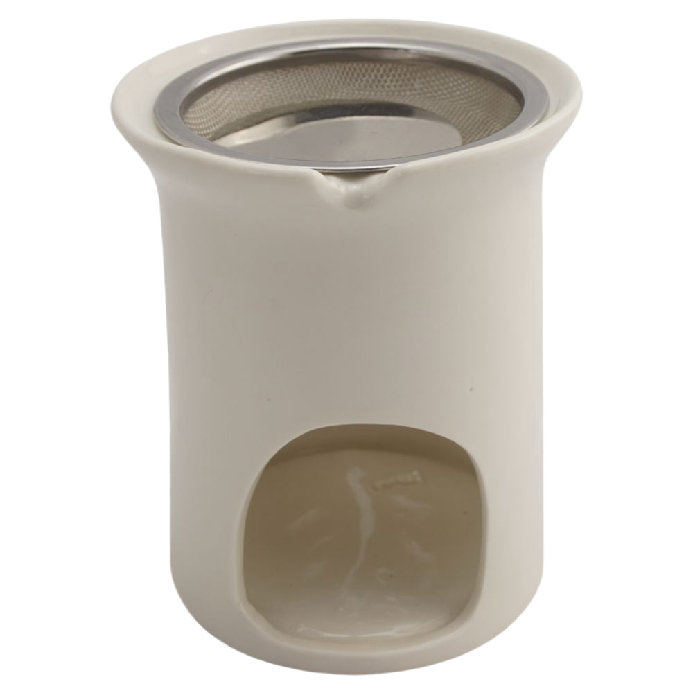 Das Stövchen ist mit einem Edelstahlsieb ausgestattet, das sich dank einer praktischen Kerbe im Rand leicht entnehmen lässt. Für empfindliche Räucherstoffe und flüssig werdende Harze liegt eine passende Metallscheibe bei, die das Sieb schützt.