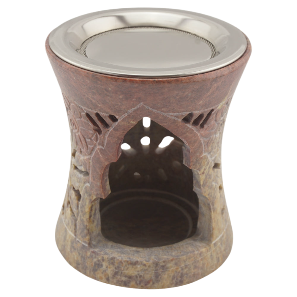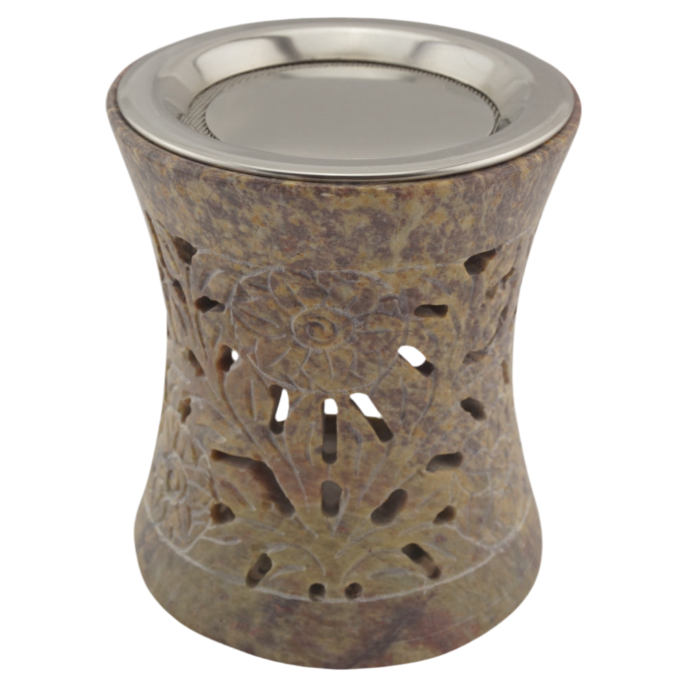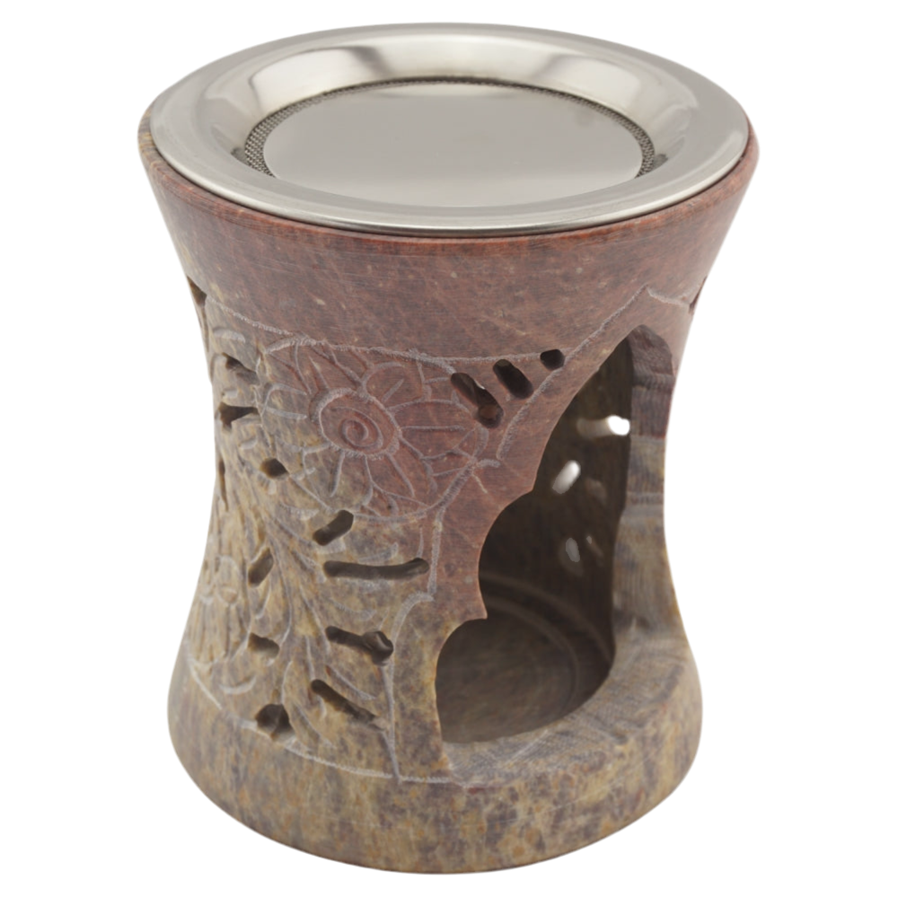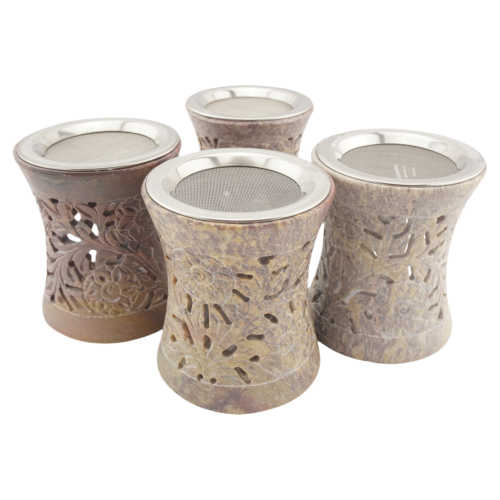 Räucherstövchen “Nilay” aus indischem Speckstein – Zarte Eleganz für sanftes Räuchern mit Edelstahlsieb & Metallscheibe