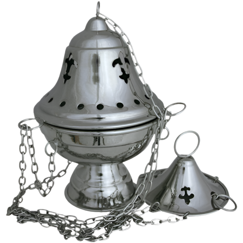 Ein Hauch von Zeremonie & Tradition – Das edle Weihrauchfass Vernickelt vereint klassische Kirchenästhetik mit moderner Präzision. Die filigranen Rauchöffnungen in Lilien- und Kreisoptik lassen den duftenden Rauch sanft aufsteigen und schaffen eine mystische Atmosphäre in deinen Räumen.